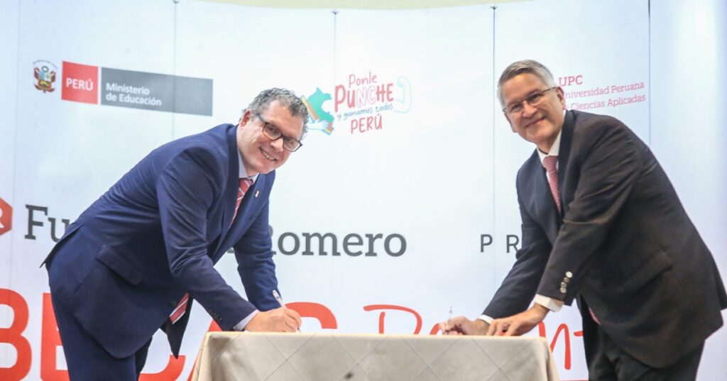 El Minedu y la Fundación Romero suscribieron un convenio específico de cooperación que permitirá ofrecer 250 000 becas virtuales a docentes de colegios públicos, directivos y estudiantes, enfocadas en el desarrollo de habilidades socioemocionales, tecnológicas, liderazgo y empleabilidad, con certificación de la Universidad Peruana de Ciencias Aplicadas (UPC).
