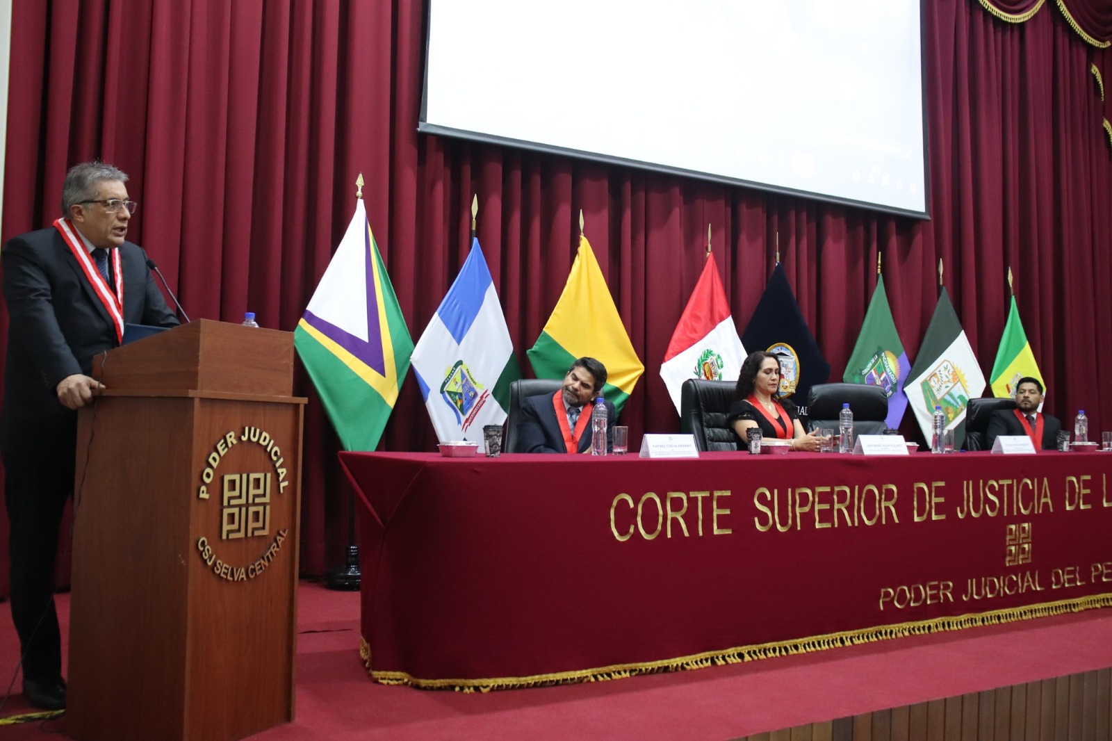 La actividad protocolar inició con las palabras de bienvenida e inauguración de la presidenta de la Corte Superior de Justicia de la Selva Central, Jenny Maribel Bazán Escalante, quien expresó el agradecimiento al Juez Supremo por el esfuerzo y la deferencia de visitar el Distrito Judicial por primera vez para compartir sus conocimientos acerca de la tecnología que se está aplicando para mejorar el trabajo judicial.