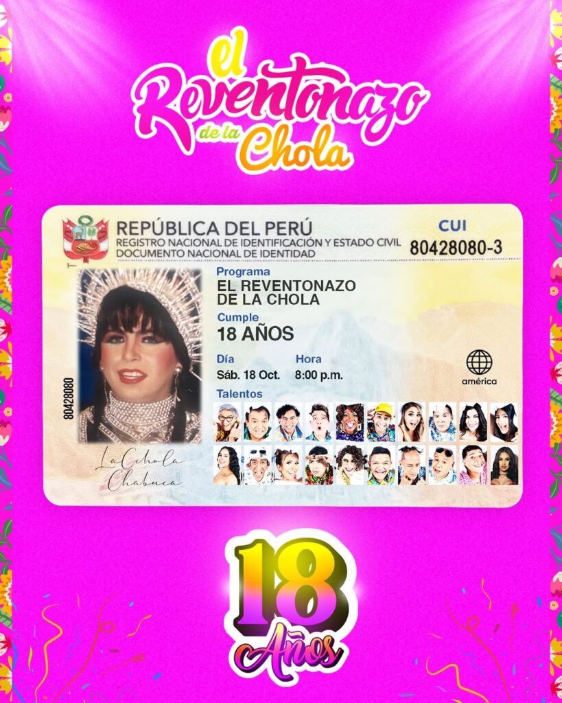 El sábado 18 de octubre, La Chola Chabuca se vestió de gala para celebrar el 18 aniversario del ‘Reventonazo de la Chola’, que desde su inicio se mantiene como líder de su horario llevando entretenimiento a las familias peruanas, y estará acompañada de una constelación de estrellas.