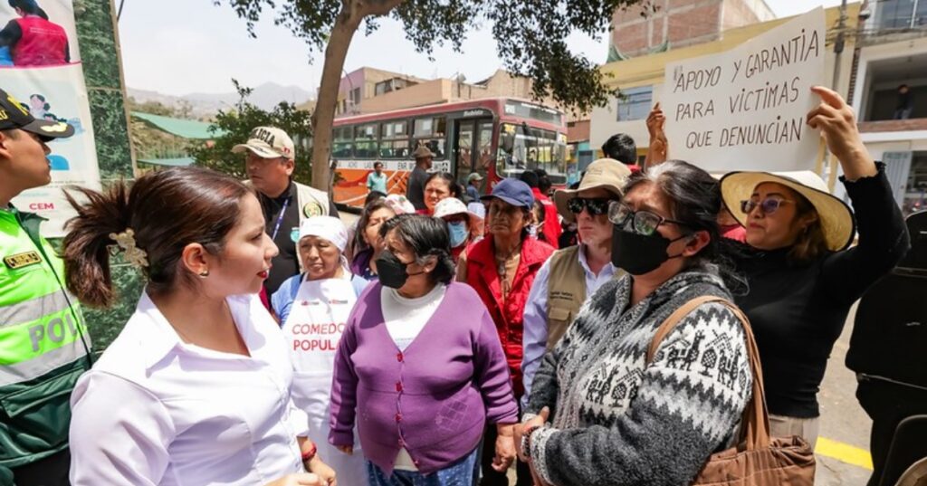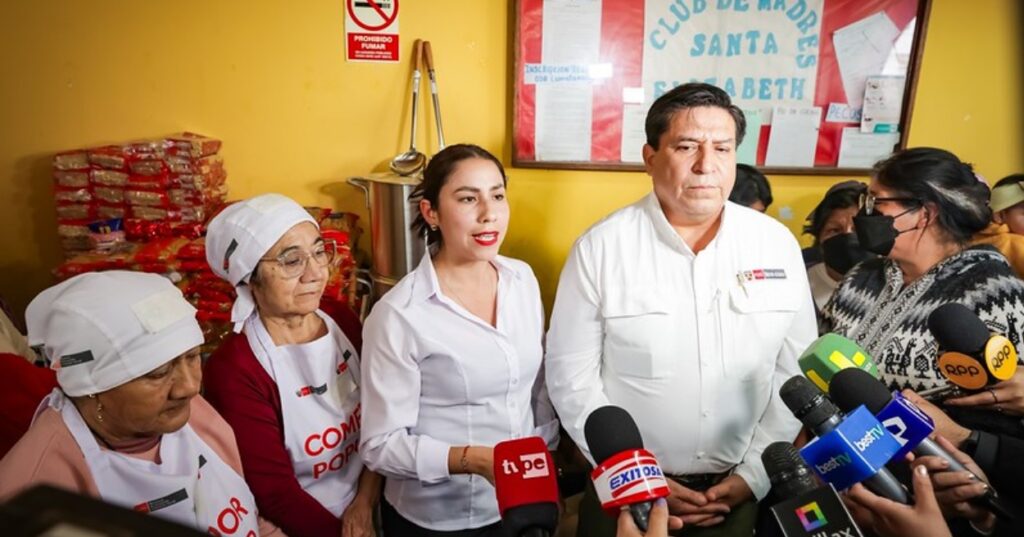 • Ministra Lesly Shica y el titular de Interior, Vicente Tiburcio, acompañaron a las socias del comedor popular “Señor de los Milagros”, que sufrió un robo en sus instalaciones. Allí anunciaron que las lideresas no están solas y se les brindará protección.