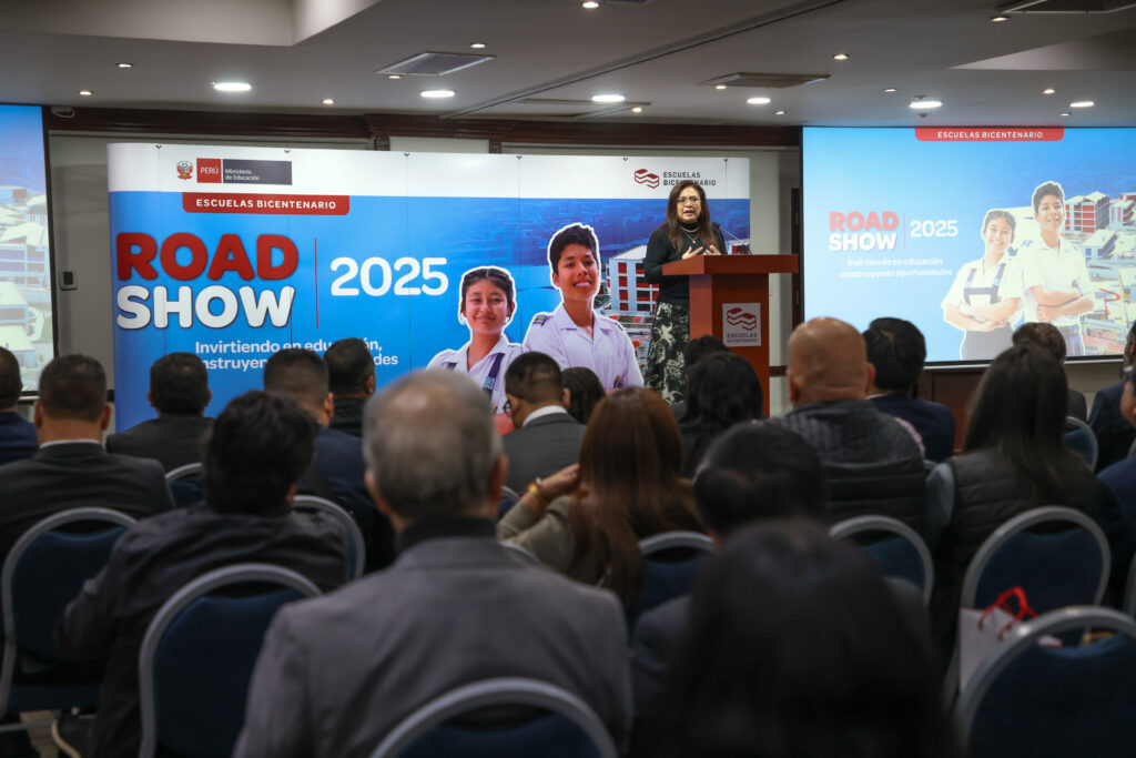 El proyecto para construir 17 nuevas Escuelas Bicentenario en 12 regiones del país, que ofrecerá oportunidades de desarrollo personal a más de 20 000 estudiantes, fue presentado en una exposición itinerante, denominada Roadshow, que lideró la viceministra de Gestión Institucional del Ministerio de Educación, Cecilia García Díaz, quien aseveró que está demostrado que “las Escuelas Bicentenario cambian vidas”.