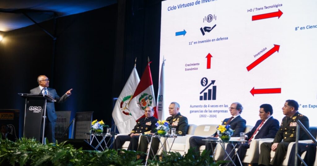 El ministro de Defensa, César Díaz Peche, participó en el Foro La Industria de Defensa como Política de Estado, organizado por la Sociedad Nacional de Industrias (SNI), donde expuso el rol del sector en la promoción de la industria nacional para la defensa y su relación con la modernización de las Fuerzas Armadas.