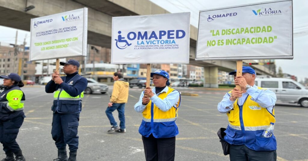 Lima, octubre de 2025. En el cruce de las avenidas Canadá y Aviación, la Oficina Municipal de Atención a la Persona con Discapacidad (OMAPED) de la Municipalidad de La Victoria realizó una gran activación ciudadana para informar sobre los beneficios del “Pase Libre”, establecido por la Ley N.º 30412, que permite a las personas con discapacidad severa viajar sin costo en el transporte público terrestre.