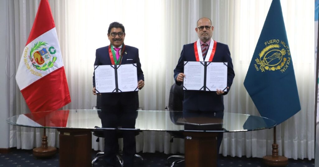 El objetivo del convenio es establecer lineamientos y mecanismos de cooperación y coordinación entre ambas instituciones, a fin de promover la capacitación, actualización y perfeccionamiento de magistrados y operadores del sistema de justicia militar policial, así como la realización de actividades académicas, investigaciones conjuntas y publicaciones especializadas.