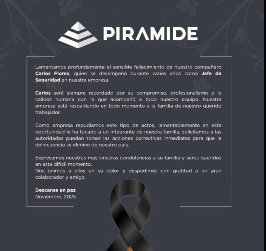 La empresa rechazó categóricamente el crimen y exigió acciones correctivas inmediatas. «Como empresa repudiamos este tipo de actos. Lamentablemente, esta vez le ha tocado a un integrante de nuestra familia. Solicitamos que las autoridades actúen con urgencia para que la delincuencia deje de cobrarse vidas», indicó Ladrillos Pirámide.