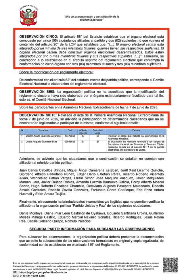 El Pre candidato presidencial de Unidad Nacional y ex miembro de la bancada de Alianza Para el Progreso Roberto Chiabra León, esta siendo cuestionado por su propio partido político y todos los que conforman Unidad Nacional por la Resolución del Jurado Nacional de Elecciones N° 000341 -2025 –DNROP/JNE donde muestra diferentes observaciones en sus internas; que no fueron subsanados por el partido Unidad y Paz.