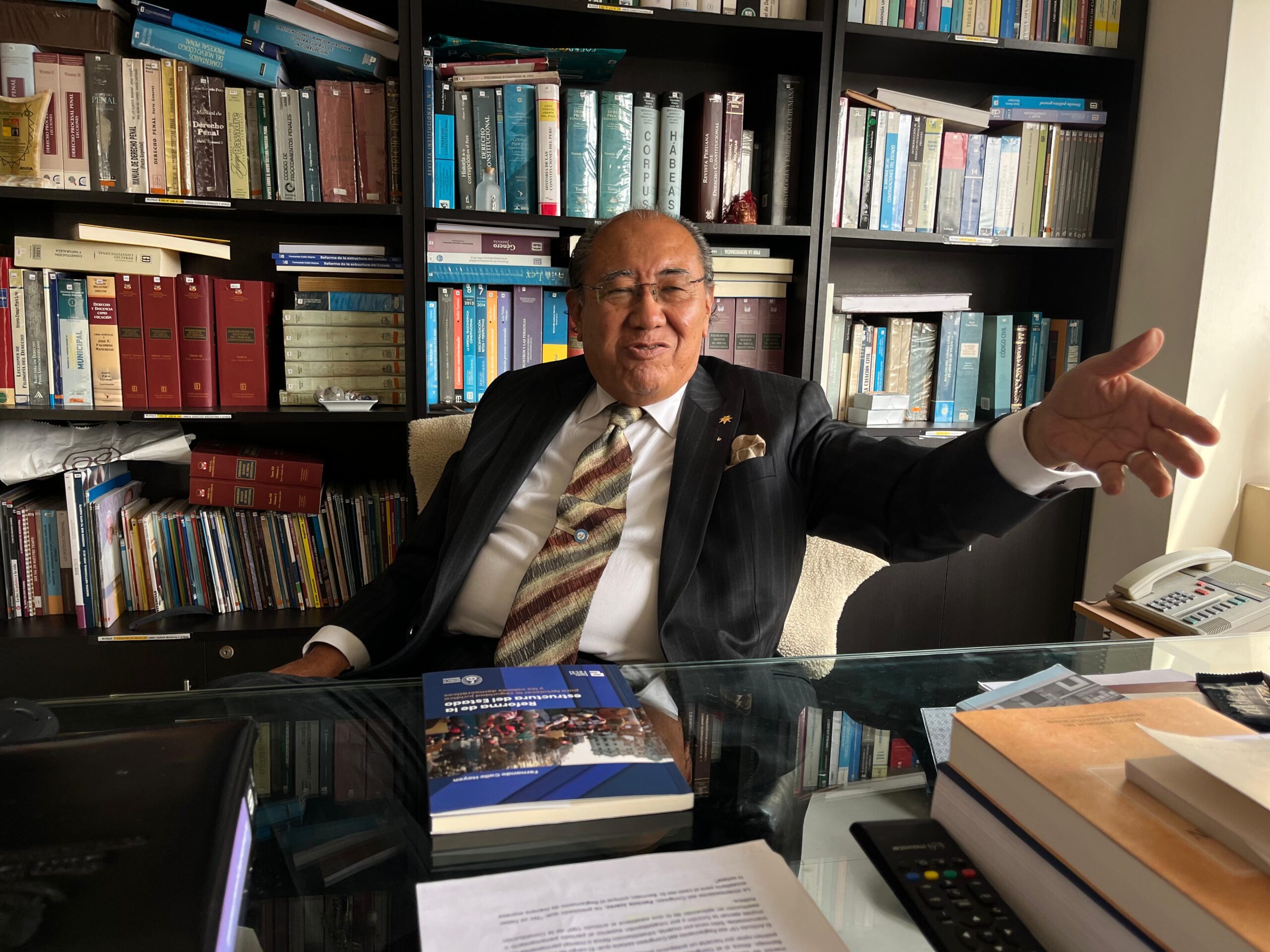 Mira, hay un librito que me ha publicado la UNI. Recién me lo hicieron llegar: Reforma de la estructura del Estado. Lamentablemente están llevando al país a una situación en que la Asamblea Constituyente es una necesidad. Yo sé que con eso me gano apelativos de todo tipo, pero ya han modificado más de 90 artículos de la Constitución, y casi todos para endulzar y favorecer la corrupción.