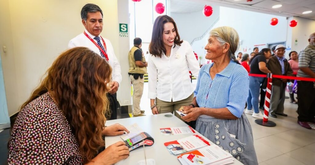 Como parte de sus acciones de supervisión, la ministra visitó la agencia del Banco de la Nación en San Vicente de Cañete, donde verificó la atención brindada a los adultos mayores que reciben la cobertura integral impulsada por el Midis para mejorar su calidad de vida.