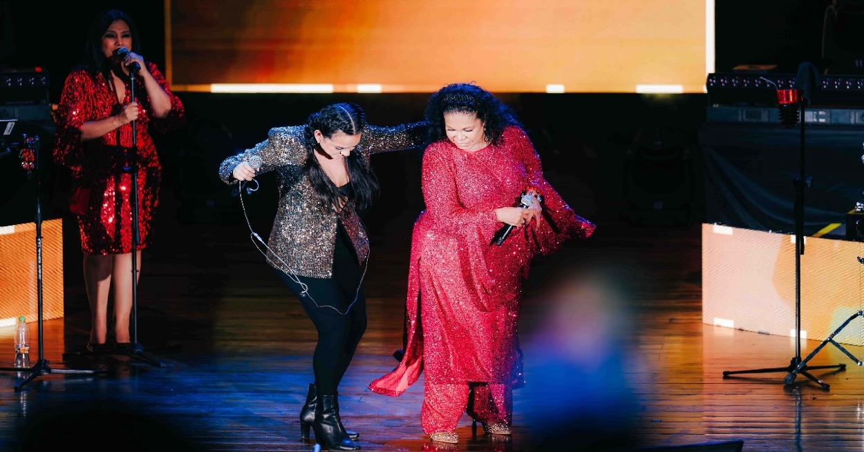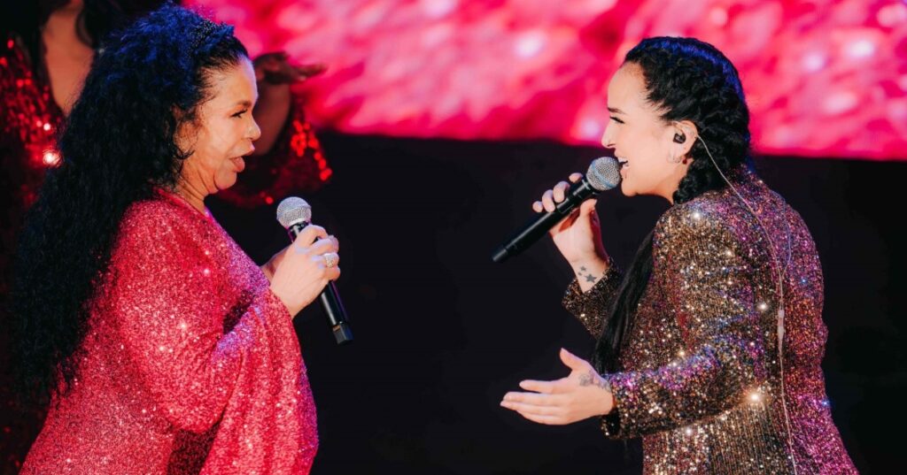 Entonces ocurrió uno de esos instantes que definen una velada. Juntas interpretaron “Hoy”, entre aplausos y gritos del público. Daniela, lejos de retirarse, se quedó en escena, cantando junto al coro con la naturalidad de quien siempre hubiera estado allí. El público celebró esa complicidad genuina, ese puente entre generaciones que no necesita presentación.