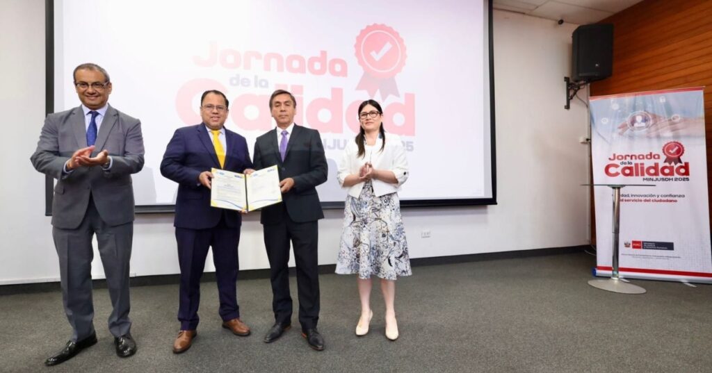 En el marco de la “Jornada de la Calidad 2025”, el Ministerio de Justicia y Derechos Humanos (MINJUSDH) reconoció las mejores prácticas institucionales del sector, destacando el esfuerzo sostenido de sus unidades orgánicas, programas y organismos adscritos por fortalecer la calidad en la prestación de servicios. Este espacio permitió evidenciar los avances obtenidos a través de una gestión basada en la innovación, la eficiencia y la mejora continua.