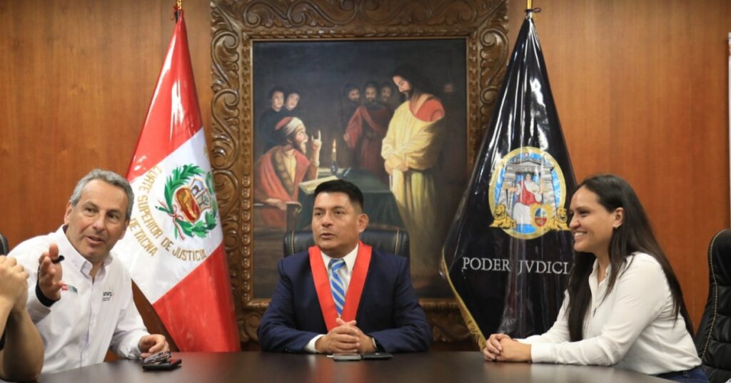 Hoy la autoridad del sector Justicia sostuvo un encuentro con el presidente de la Corte Superior de Justicia de Tacna, Renzo Medina Chávez, a fin de coordinar iniciativas conjuntas destinadas a reforzar los servicios de la Superintendencia Nacional de los Registros Públicos (SUNARP), como la inscripción registral virtual en dicha entidad.