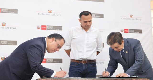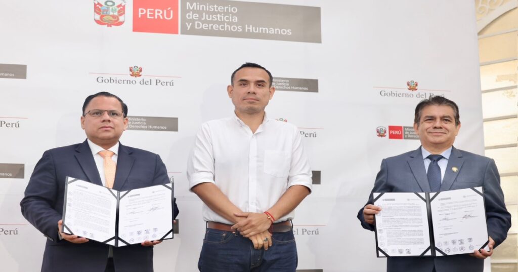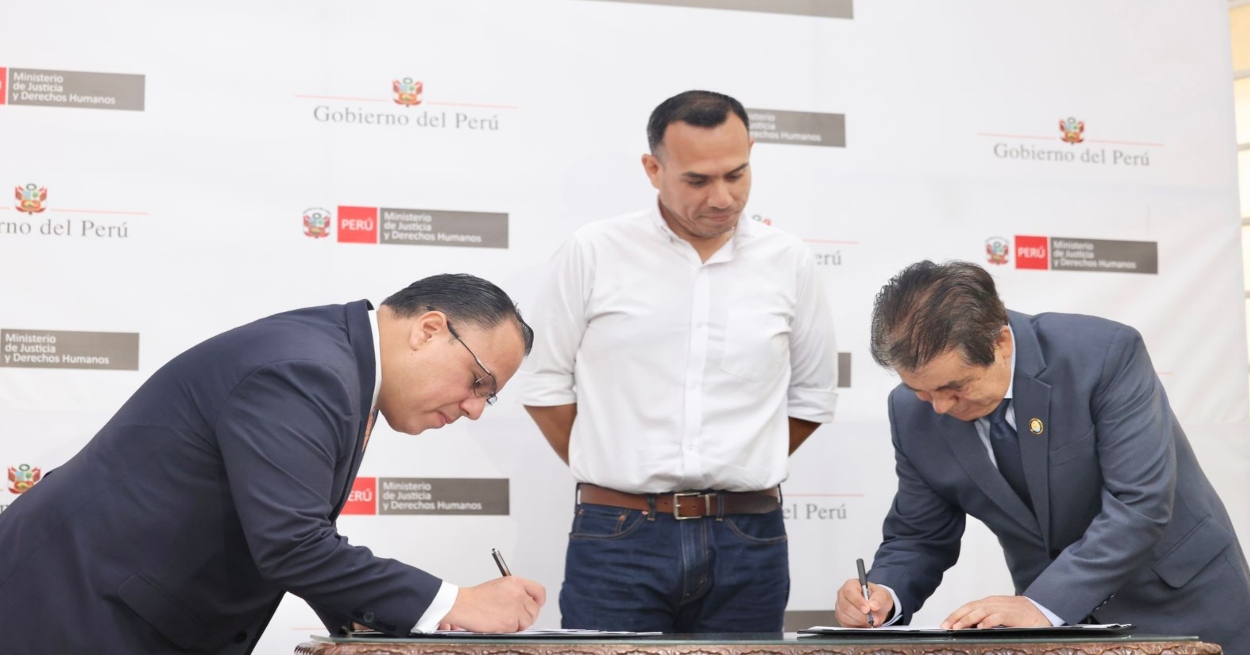 En ceremonia liderada por el presidente José Jerí, el ministro de Justicia y Derechos Humanos, Walter Martínez Laura, y el fiscal de la nación interino, Tomás Gálvez, suscribieron el convenio de cooperación interinstitucional mediante el cual se optimizará el uso de la base de datos penitenciaria como herramienta de prevención, análisis y lucha contra la criminalidad organizada, garantizando el tratamiento seguro, anonimizado y legalmente protegido de la información.