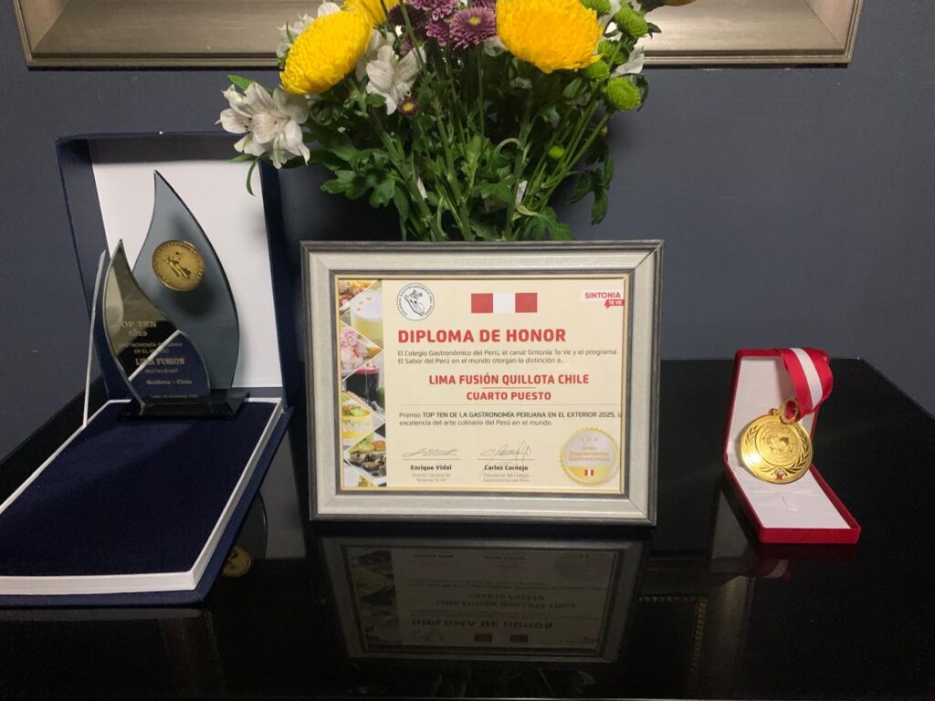 El Colegio Gastronòmico del Perù entregò los premios de su concurso anual Top ten del arte culinario peruano en el ,mundo 2025 en Quilota y Santiago de Chile para los dos restaurantes que lograron ubicarse entre los 10 mejores tras 5 meses de evaluaciones,votaciones digitales y visitas inopinadas.