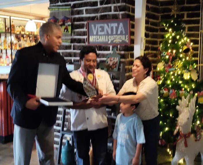 El director Internacional del Colegio Gastronòmico del Perù,periodista Enrique Vidal llegó a esa ciudad chilena y entregò la medalla,diploma y trofeo a Anthony Guti gerente y Rolando Yactayo,jefe de cocina de Lima Fusiòn.