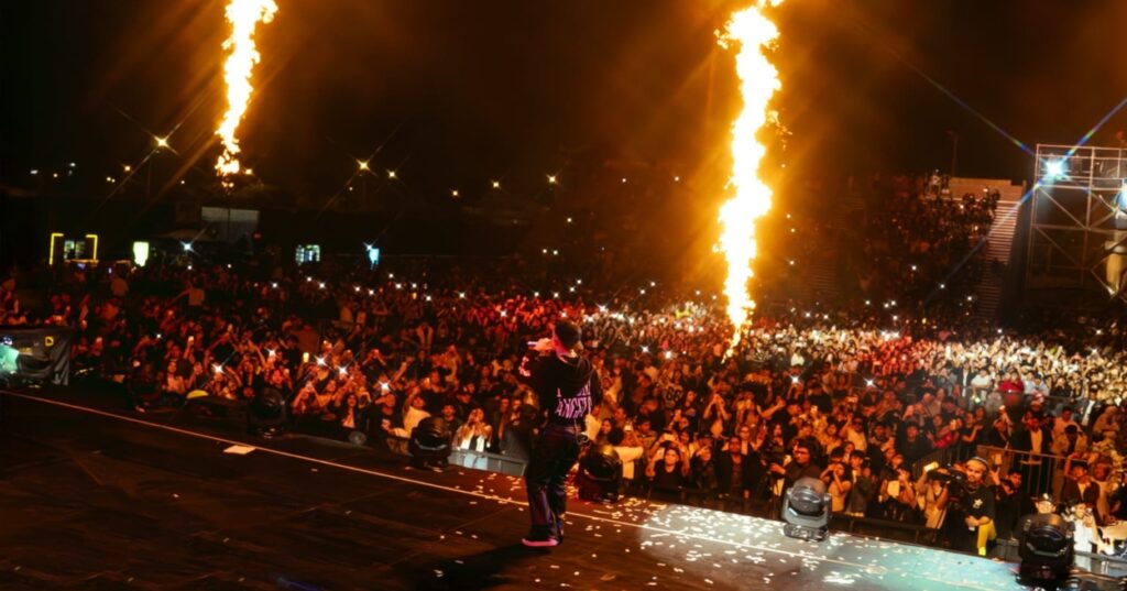 Cris MJ se despachó un repertorio de más de 35 canciones en una noche que no hizo más que reconfirmar el buen momento del artista en la elite urbana quien cerró su show con «Botellita de Champagne » y su nuevo hit «Vamo’ a bailotear «.