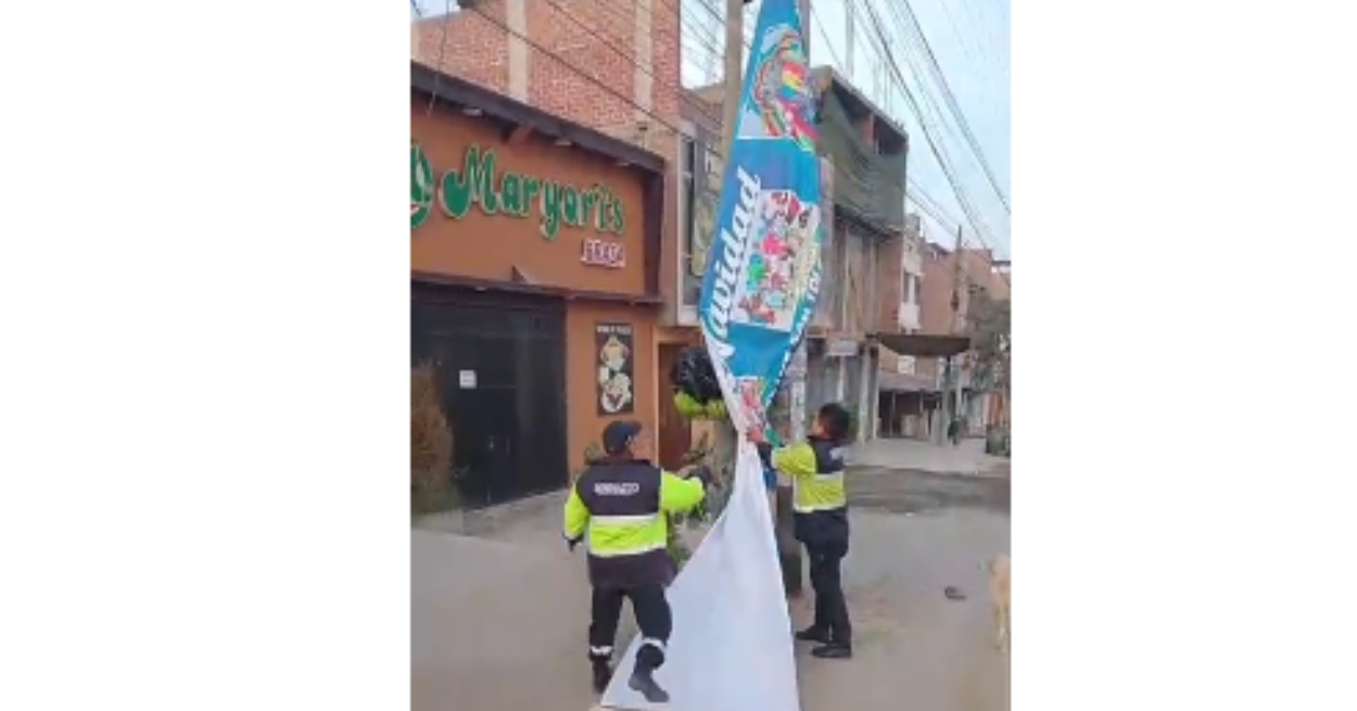 En horas de la mañana, personal de serenazgo procedió a retirar la publicidad que invitaba a todos los niños de Cieneguilla a un evento navideño que incluiría show infantil, sorteo de bicicletas, juegos inflables y entrega de regalos.