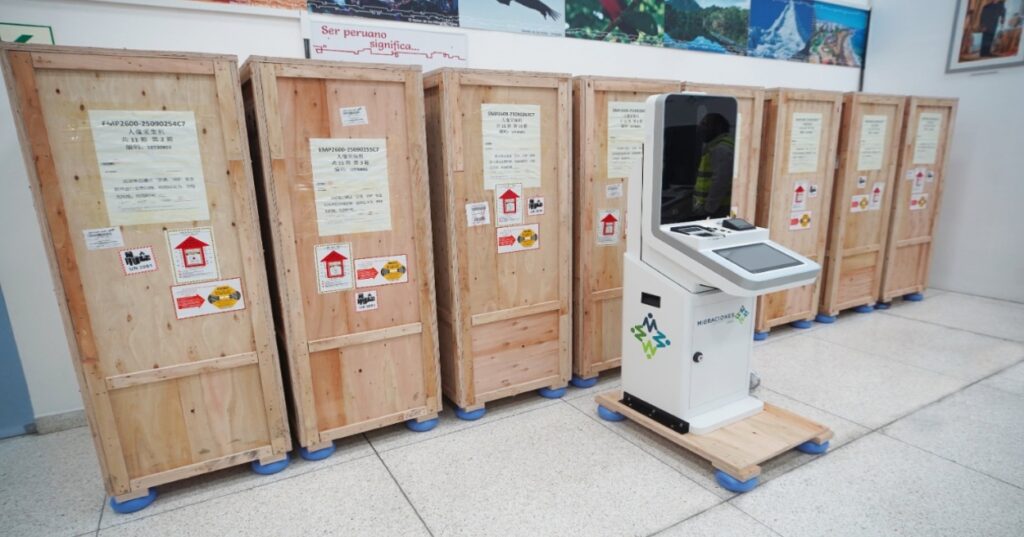 El superintendente nacional de Migraciones, Alberto Balladares, junto con la gerente general, Liseth Melchor, y la directora de Operaciones, Valeria Morales, supervisó la llegada de los equipos tecnológicos, que pronto entrarán en funcionamiento.