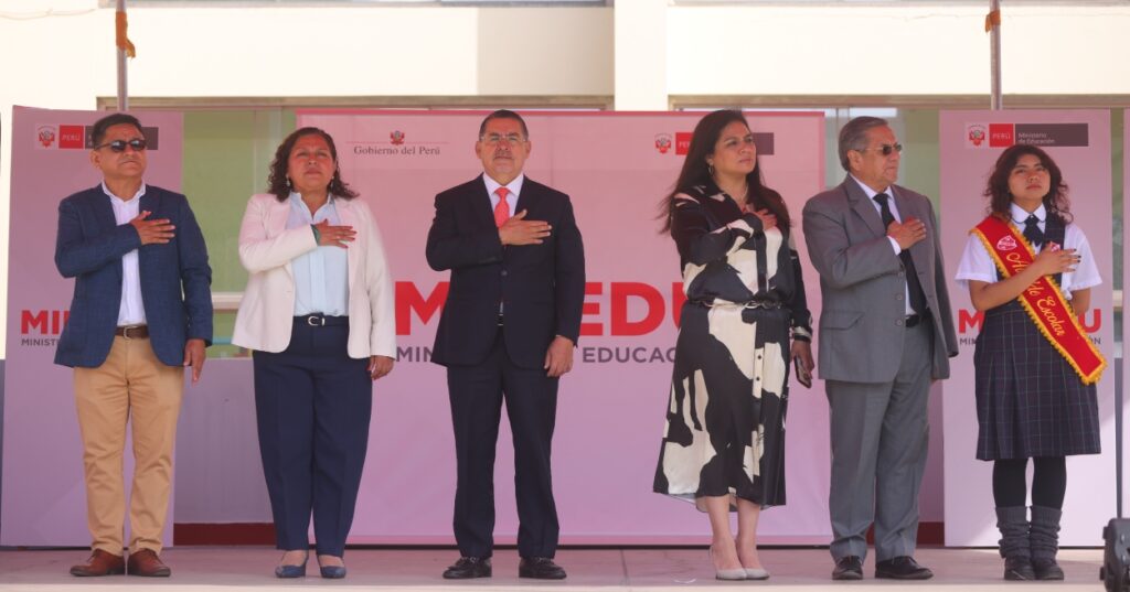 En una ceremonia realizada en la Institución Educativa Emblemática Ricardo Palma, en Surquillo, el titular del sector, convocó a directivos, docentes, estudiantes, padres de familia y administrativos a unir esfuerzos para asegurar un Buen Inicio del Año Escolar 2026.