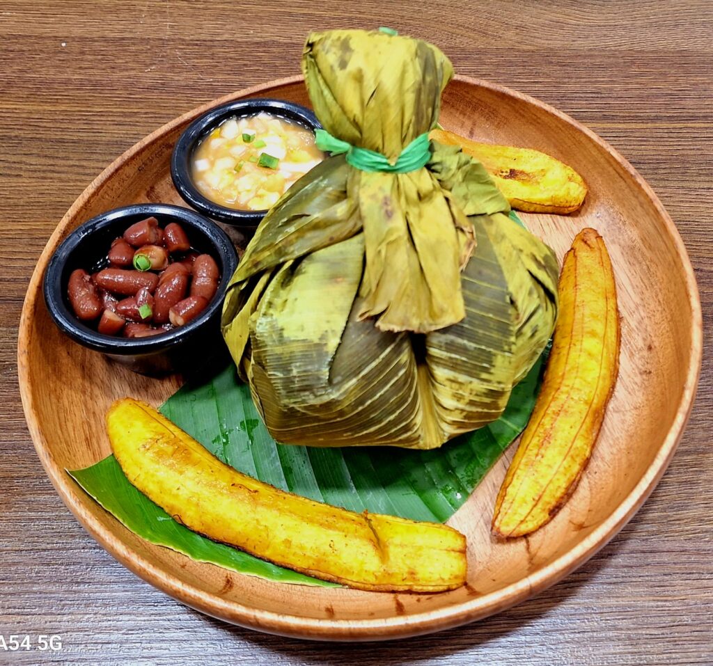 “Pollo a la Canga con plátanos verdes o yuquitas y acompañado de tu ají cocona, tu segunda opción es el Lechón al horno con tacacho, acompañado con su ensalada criolla y su frijolito. También tenemos el Juane con su pollo a la parrilla aderezado naturalmente con su lechuga y su frijolito, bajo en grasa y con muchas proteínas; obviamente no podía faltar el chocolate y su panetón, y sus 12 uvas”, contó el propietario de Shicshiribo de Tocache, que ha tenido mucha aceptación por sus paisanos en Lima.