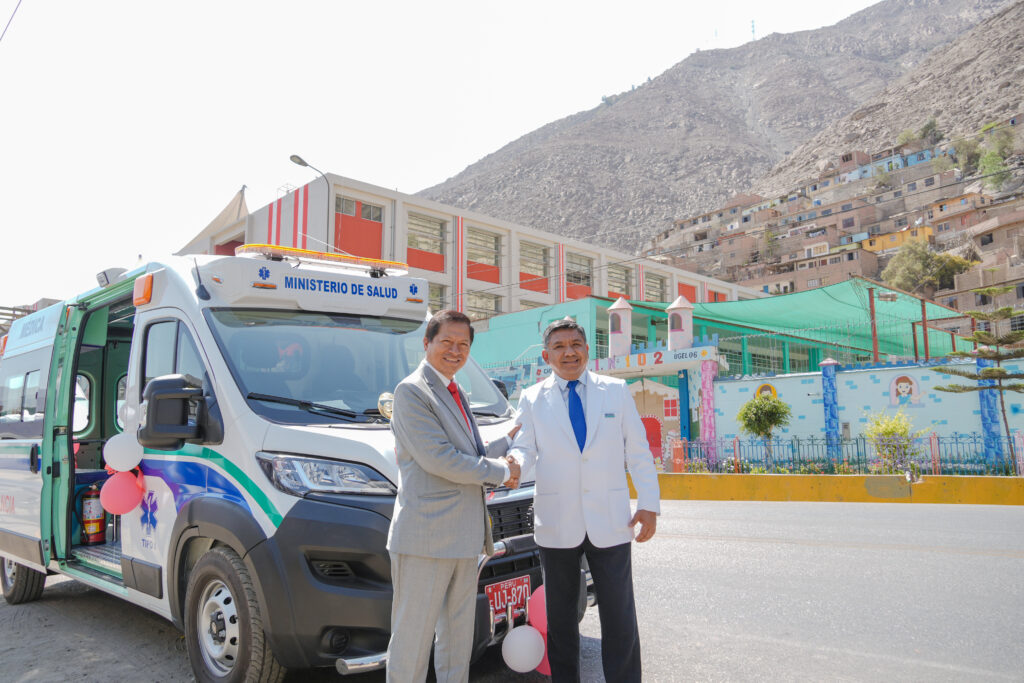 “Gracias al apoyo del Ministerio de Salud (MINSA), la Dirección de Redes Integradas de Salud (DIRIS) Lima Este entrega esta moderna ambulancia urbana Tipo I, totalmente equipada, al Centro de Salud Moyopampa; un vehículo que ayudará a salvar vidas en toda la jurisdicción de la RIS Chaclacayo”.