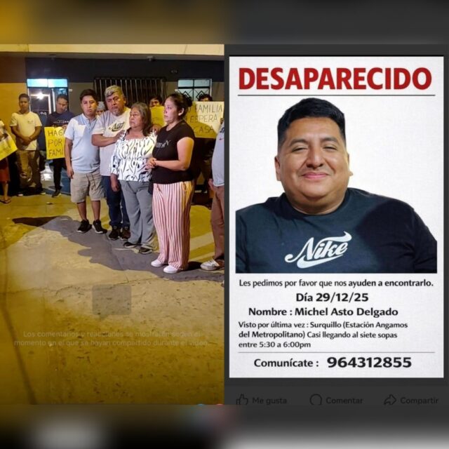 La Policía Nacional del Perú (PNP) investiga la desaparición del ingeniero de sistemas Michel Asto Delgado(34), reportado como no habido desde la tarde del lunes 29 de diciembre 2025, luego de retirarse de su centro de trabajo. El joven labora en el área de sistemas del hospital del Ministerio de Salud (Minsa).