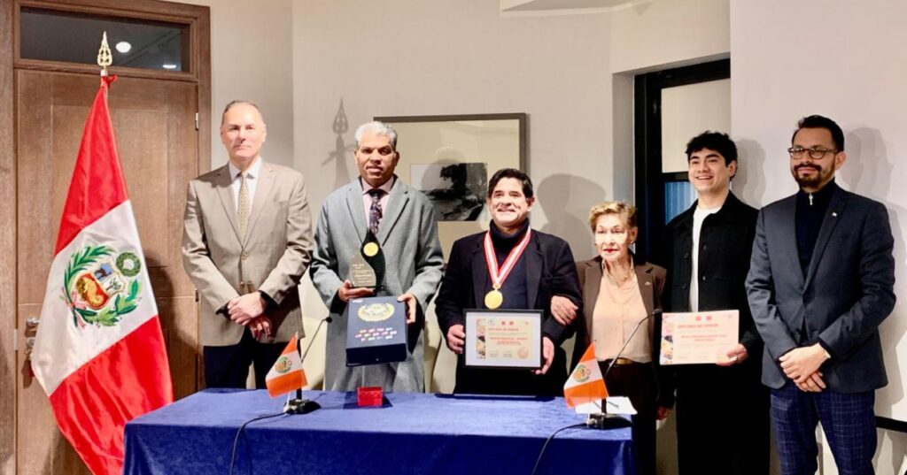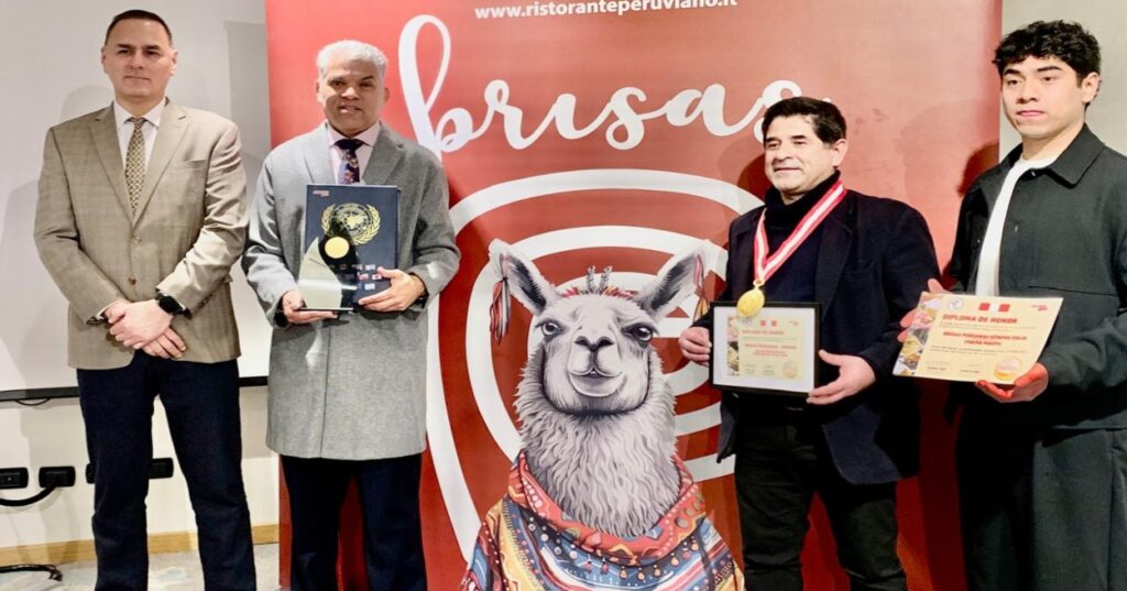 El periodista Enrique Vidal, director internacional del Colegio Gastronómico del Perú, entregó los premios (medalla, trofeo y diploma) y destacó la auténtica sazón peruana en este restaurante en el centro de Génova.