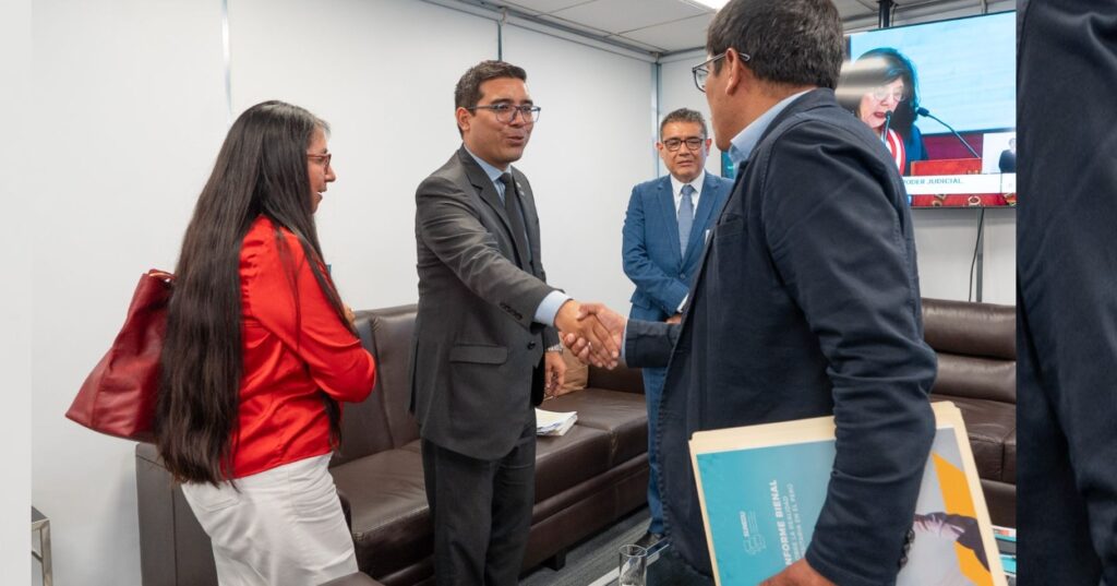 Una importante reunión de trabajo sostuvo hoy el superintendente de la Sunedu, Dr. Vicente Espinoza Santillán, con la congresista Ruth Luque Ibarra, quien visitó la institución para expresar su preocupación por los reiterados casos de hostigamiento sexual registrados en diversas universidades de la zona sur del país, así como por presuntos nombramientos indebidos en una universidad de la región Puno.