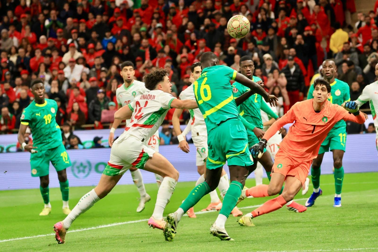 A los 98’, El Hadji Malick Diouf hizo caer en el área a Brahim Díaz, y tras revisión del VAR, el árbitro Ndala Ngambo sancionó penal para Marruecos, decisión que generó una fuerte polémica, y provocó el retiro de Senegal del campo, aunque luego volvieron. Brahim Díaz lanzó el penal e intentó definir con un remate picado, y lo atajó el arquero Mendy. Con el 0-0 se fueron al suplementario.
