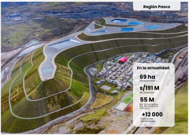 Con una inversión superior a los S/ 191 millones, el proyecto garantizó la estabilidad física, química e hidrológica del depósito de desmontes, reduciendo riesgos ambientales y sanitarios, y beneficiando de manera directa a más de 12,000 personas en Pasco, quienes, por años, convivieron con los impactos del pasivo minero.