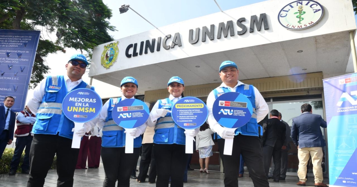 La Autoridad de Transporte Urbano para Lima y Callao (ATU) y la Universidad Nacional Mayor de San Marcos (UNMSM) colocaron la primera piedra para iniciar la mejora de la Clínica Universitaria, como parte de las obras de compensación vinculadas al desarrollo de la Línea 2 del Metro de Lima y Callao.