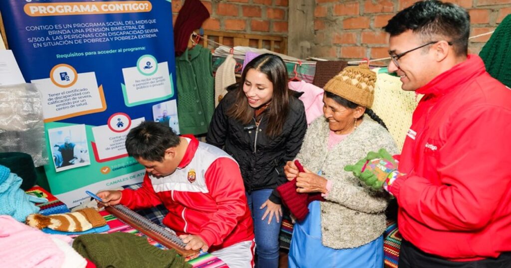 La agenda de trabajo incluyó también el reconocimiento del emprendimiento de César Ramos Cutipa, usuario del programa Contigo, quien desarrolla tejidos artesanales con acompañamiento familiar e institucional en su vivienda.