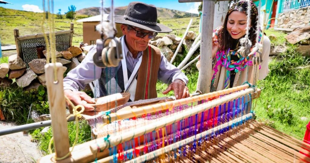 La jornada continuó en el distrito de Puno con la visita a Daniel Apaza Flores, de 76 años, artesano de la comunidad campesina Huerta Huaraya con más de veinte años de experiencia en la elaboración de tejidos, y a su esposa Felícita, ambos usuarios del programa Pensión 65.