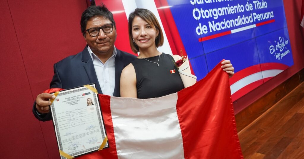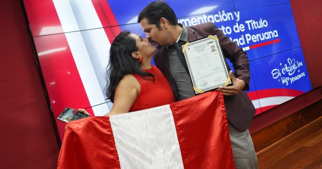 Dos años después de esta unión, presentaron sus trámites de nacionalización lo que culminó con la entrega de su Título de la Nacionalidad Peruana, el cual deberá ser mostrado ante el Registro Nacional de Identificación y Estado Civil (Reniec) para gestionar su Documento Nacional de Identidad (DNI).