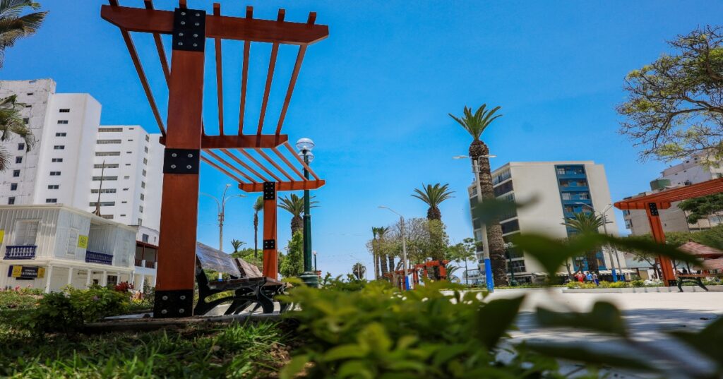 Infraestructura: Nuevas losetas que emulan las olas del mar, zona de banderas y bancas de descanso.