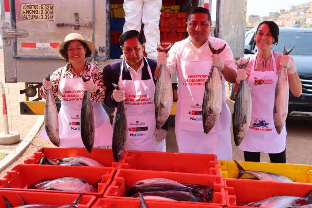 La entrega se realizó en el Estadio Municipal de la B en Huertos de Manchay – Pachacámac, con la asistencia de más de 100 comedores y ollas comunes, quienes recibieron el pescado Bonito de alto valor nutricional. Esto fue posible al trabajo articulado entre el MIDIS, la Sociedad Nacional de Pesquería – SNP y gestión municipal del alcalde Enrique Cabrera Sulca, en favor de la seguridad alimentaria de las familias en mayor situación de vulnerabilidad.