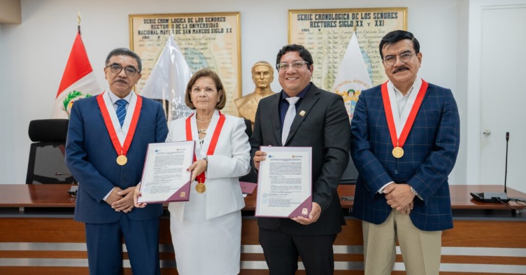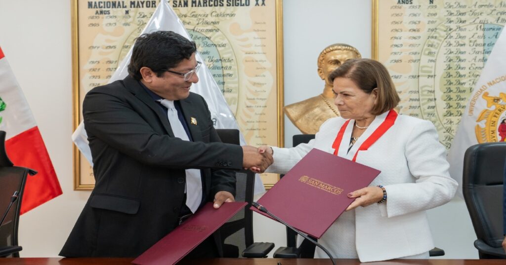 La ceremonia protocolar se realizó en la Sala de Consejos del Edificio Jorge Basadre de la UNMSM y contó con la participación de las máximas autoridades de ambas instituciones.