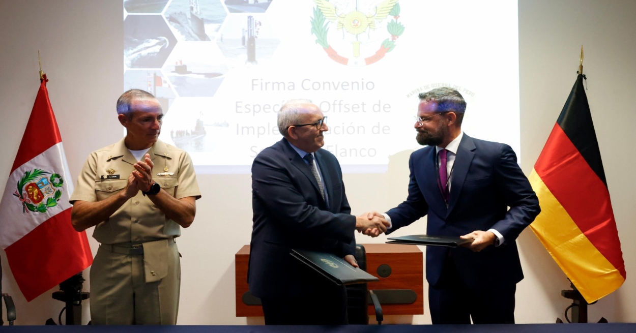 El Convenio Específico Offset fue firmado por el viceministro de Recursos para la Defensa, Adolfo Herrera Orlandini, y el representante de TKMS, en un acto protocolar que se desarrolló en la Escuela de Submarinos de la Base Naval del Callao. También asistieron el director general de la Dirección General de Recursos Materiales del Mindef, General de Brigada Carlos Sánchez Silva, entre otras autoridades de las instituciones vinculadas.