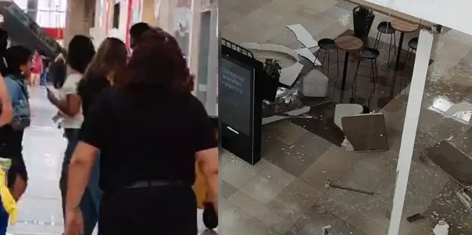 Visitantes del Mall Plaza Bellavista registraron caída de parte del techo de centro comercial, tras una inspección se detectó fisuras y daños estructurales, la Municipalidad de Bellavista ordenó la clausura temporal del centro comercial.